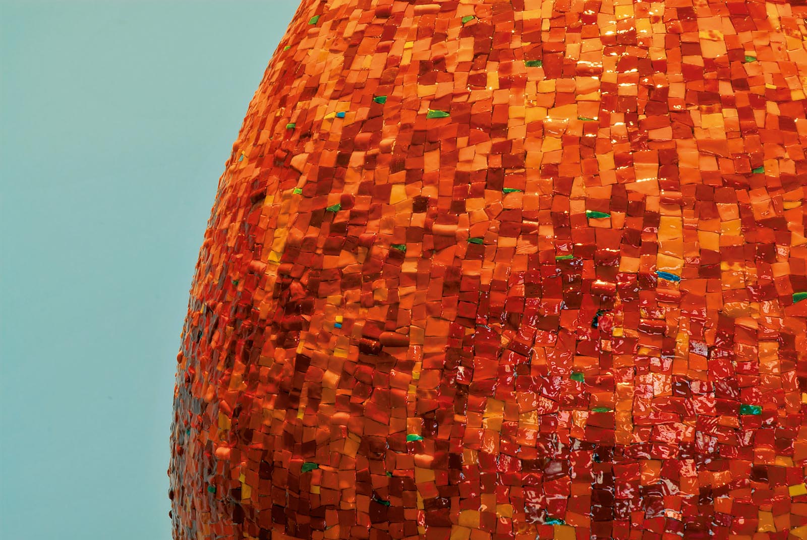Blumohito’s artistic project for the new showroom of Kunstdunger srl. The Water Sculpture Egg sliding surface was made with mosaic tiles fully handmade, while the support was covered with natural leather tiles. The Orsoni enamel, produced and cut hand by hand with the same technique since 1888 in the heart of Venice, is exalted by the elegance of water that reflects in a thousand colors the beauty of these unique colors.