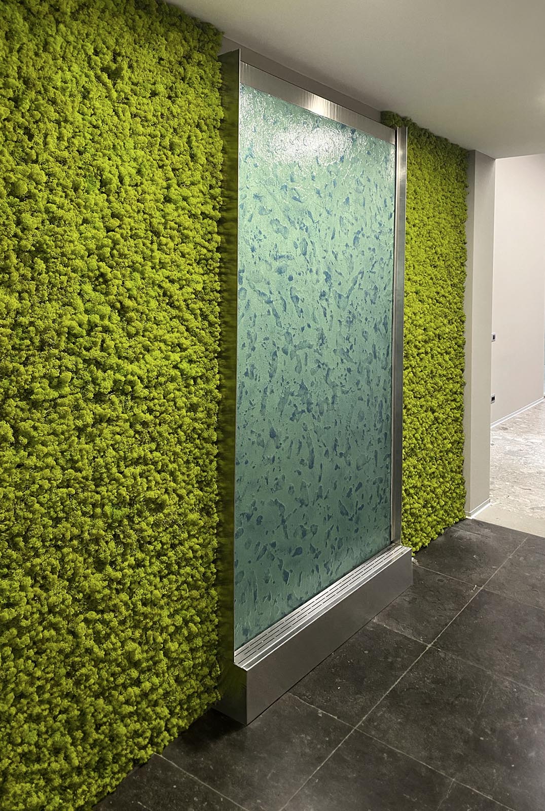 Elegante installazione WATER WALL plug&play con verniciatura custom e scorrimento Metal Aged Bronze nella sede di SEVER srl a Verona. L’installazione crea un forte impatto emozionale nell’area entrance dove è stata abbinata a una parete URBAN JUNGLE.