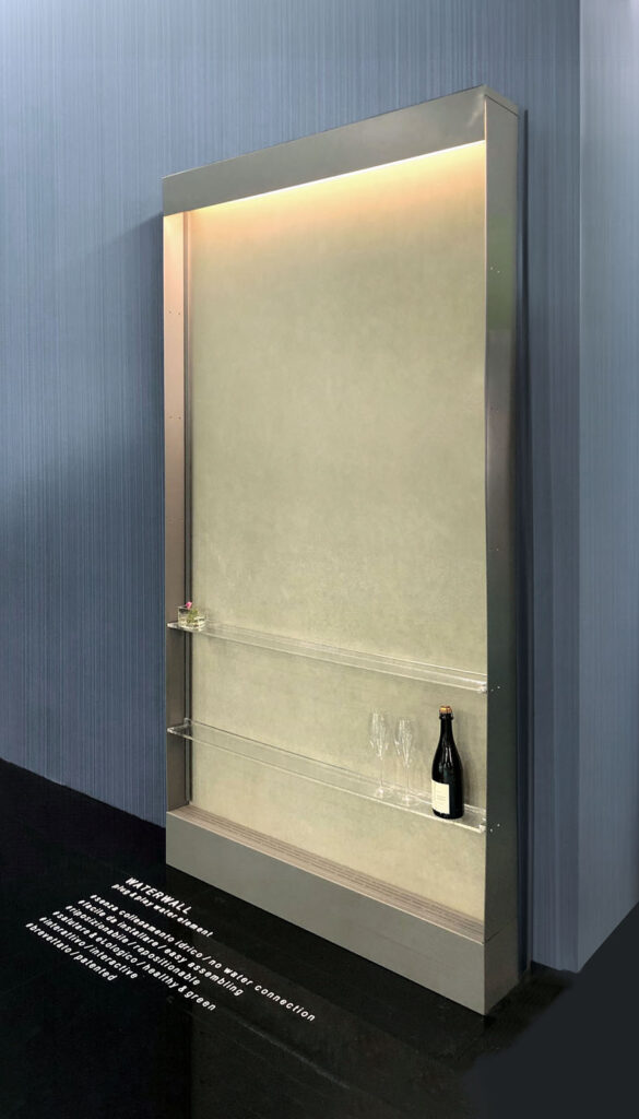 Disponibile in 6 formati, il mood è personalizzabile grazie alle finiture e alle raffinate texture su cui scorre il velo d’acqua reso ancor più scenografico dall’illuminazione a led.